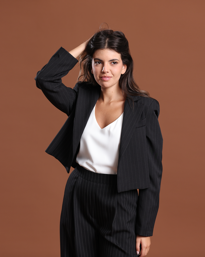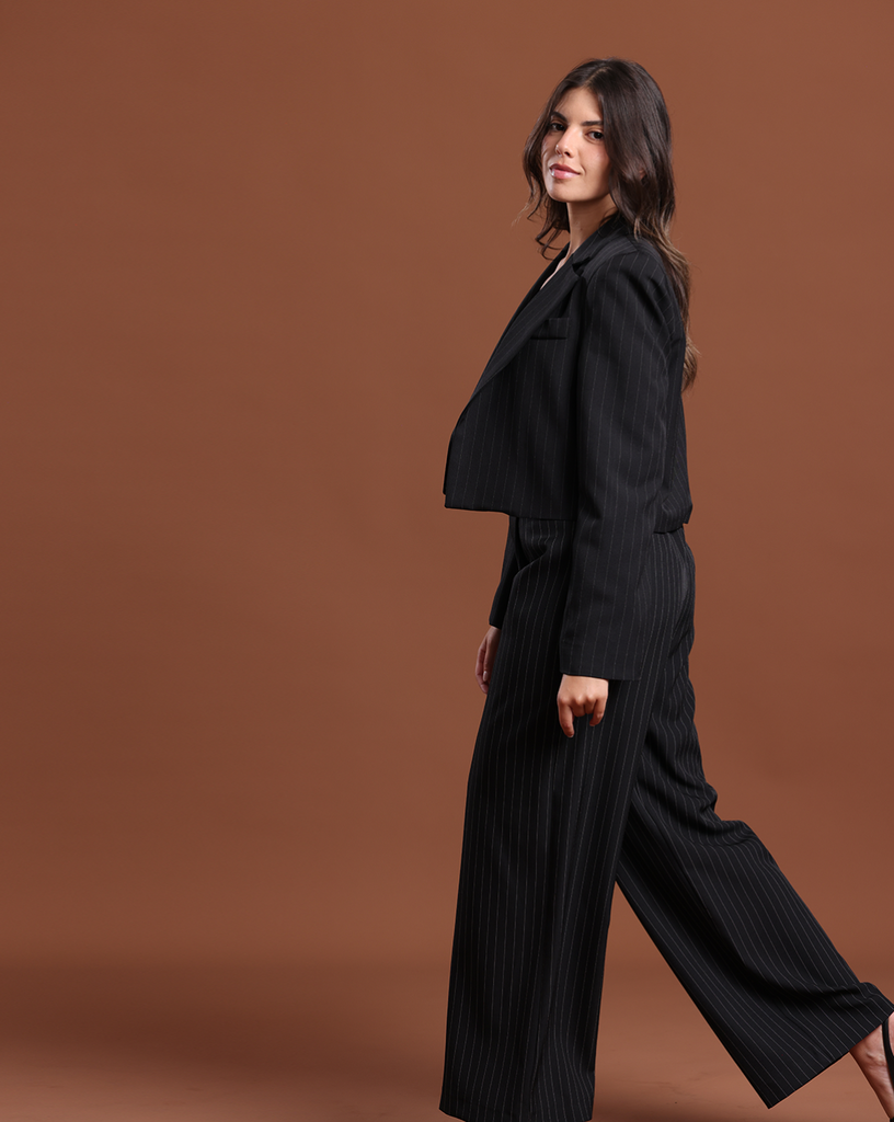 Formal Short Cut Blazer Raye Black and White