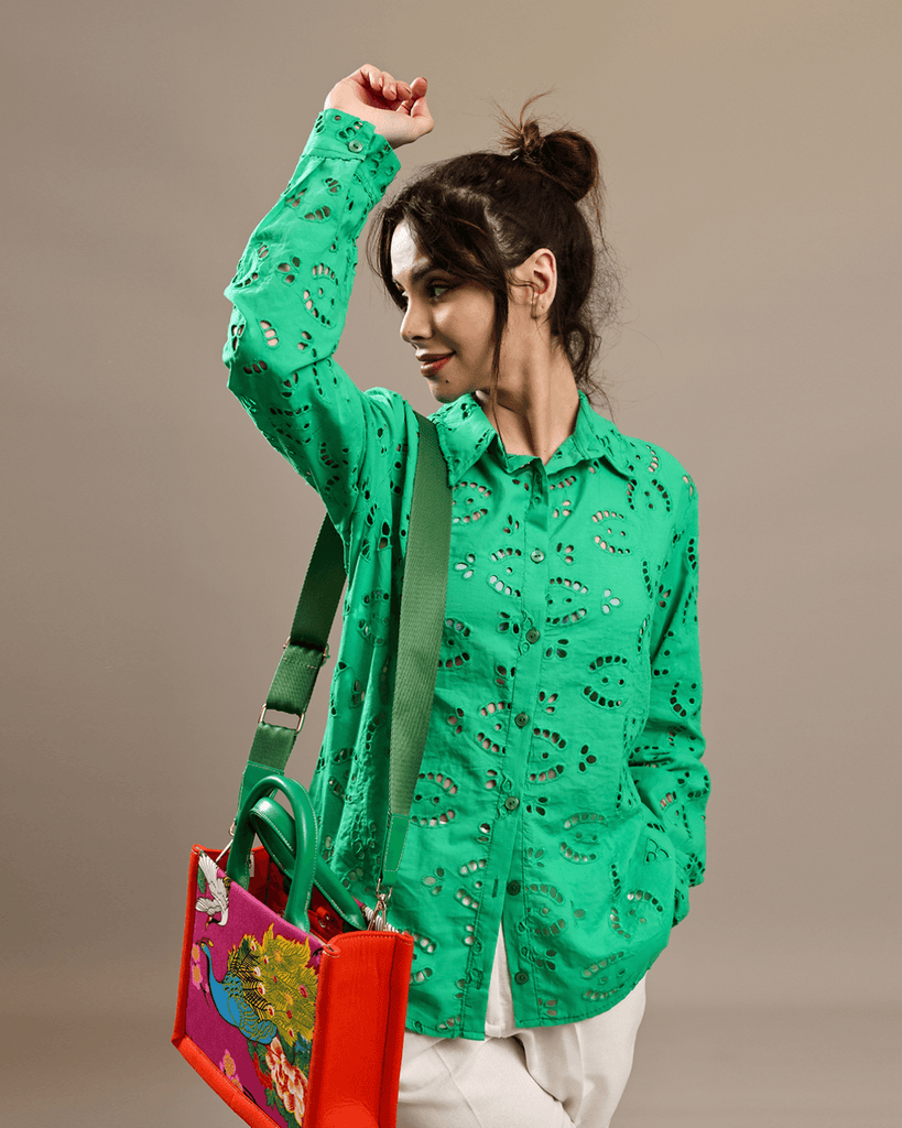 Broderie Anglaise Cotton Shirt - Baby blue / Small is backordered and will ship as soon as it is back in stock.
