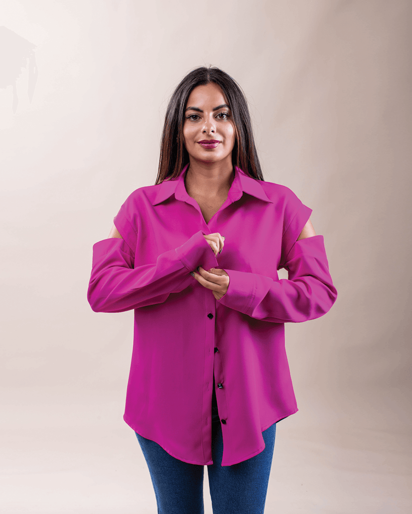 Long-Sleeve Cut Out Plain Shirt - Fuchsia / Small is backordered and will ship as soon as it is back in stock.