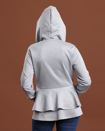 Soft Grey Hoodie with Front Zip and Hood Attached at The Back