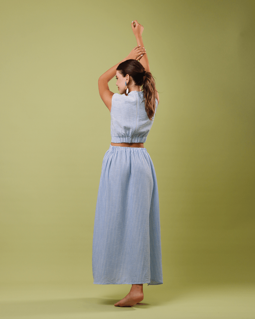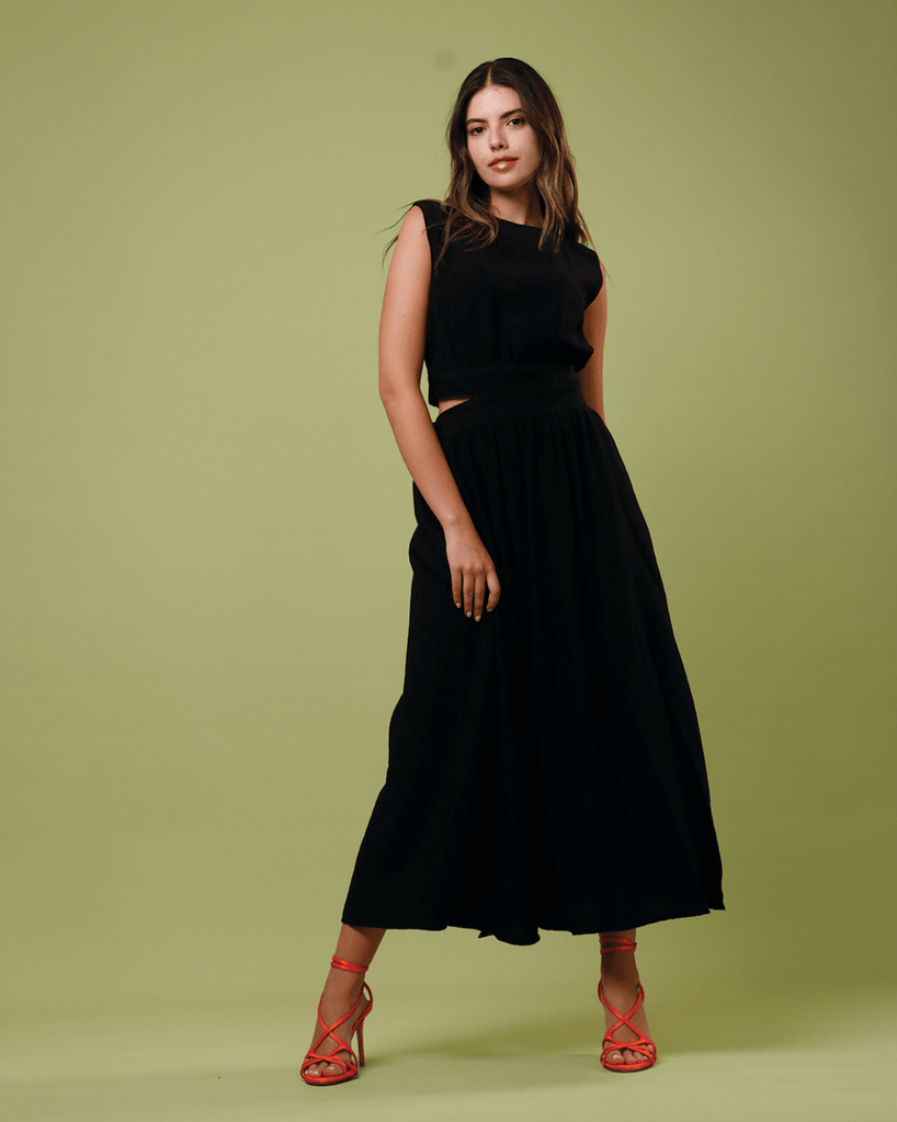 Sleeveless Long Dress with a back cut and available in multiple colors and patterns